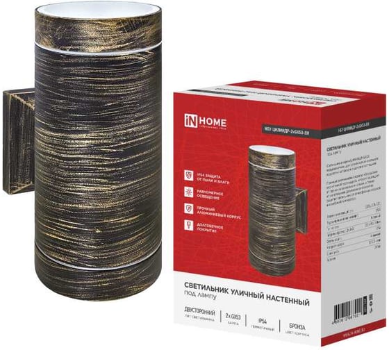 Светильник уличный настенный двусторонний IN HOME НБУ ЦИЛИНДР-2xGX53-BR алюминий, бронза IP54 4690612067001