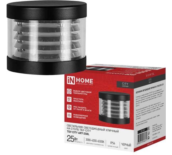 Светильник уличный светодиодный на столб IN HOME ТБУ-CITY ART-25BL 25Вт 3000/4000/6500К 90x120мм черный IP54 4690612062617