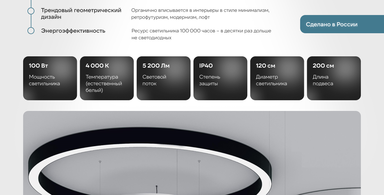 Этот светильник обеспечивает очень равномерное и мягкое освещение. Благодаря его круглой форме, свет распределяется по большому пространству без резких переходов, создавая приятную рабочую атмосферу. Визуально он смотрится аккуратно, когда висит в воздухе.