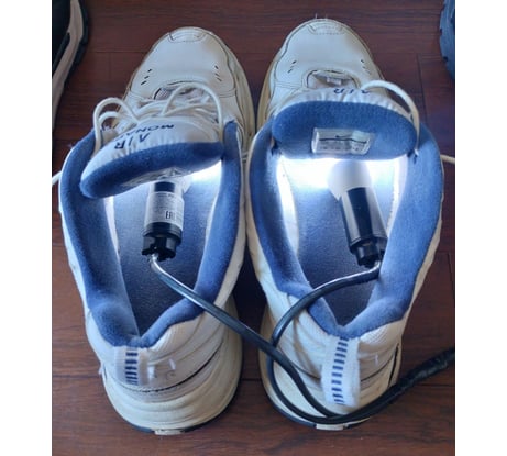 Для моих целей подошла идеально. Купил 2 штуки на пробу, к ним 2 патрона Е14, кусок провода с вилкой и замастырил из них сушилку для обуви. И прекрасно сушит через нагрев (весьма умеренный, никакого контроля не требуется!), и дезинфицирует. Есть нюанс: собственно свет не является фактором дезинфекции, это не УФ-излучение. Микроорганизмы гибнут (пишут, что практически мгновенно) при их непосредственном контакте с внешним покрытием лампы. Поэтому требуется периодическое перемещение лампы внутри ботинка, чтобы обеспечить контакт стекла с максимально возможной площадью. Либо же создание циркуляции воздуха внутри обуви, например, феном или пылесосом. Понятно, что обращаться с такой конструкцией нужно с осторожностью, чтобы не разбить лампы. Для хранения вне работы использую мешочки-пупырки для каждой отдельной лампы.