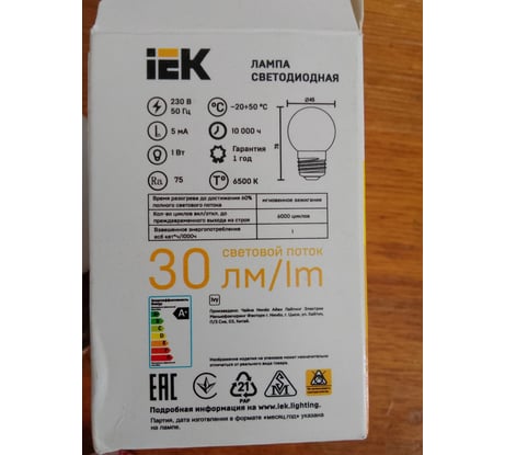 Отзывы о светодиодной декоративной лампе IEK Lighting g45 шар 1вт 230в холодный белый e27 LLE-G45-1-230-W-E27