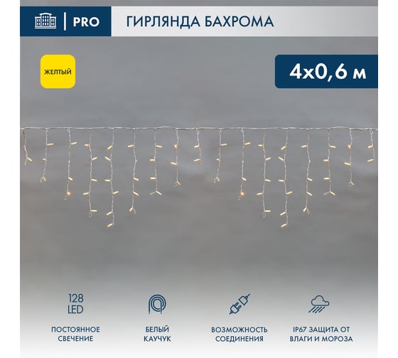 Вопросы и ответы о гирлянде Neon-Night Бахрома постоянное свечение 4х0,6м 128 LEDжёлтый 255-201
