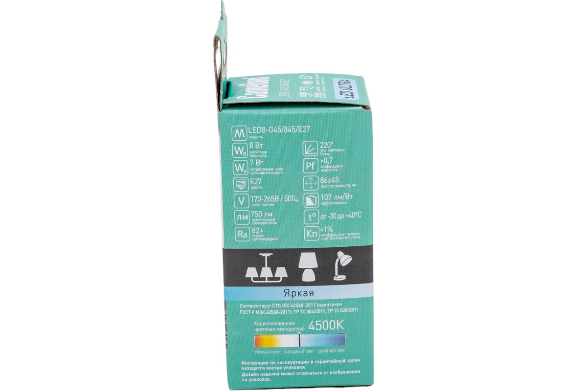 - К концу срока службы Camelion LED8-G45/845/E27 8Вт 220В 12394 световой поток снижается и составляет не более 30%;