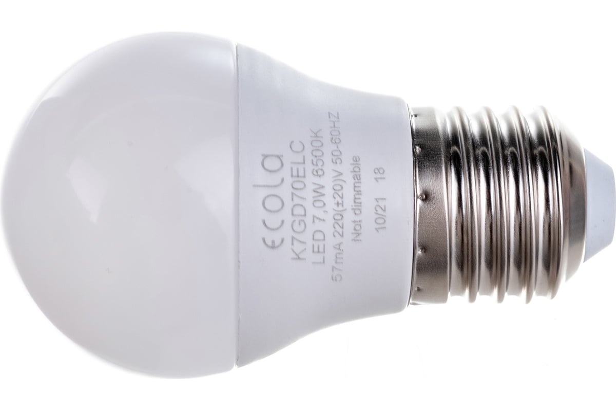 Светодиодная лампа Ecola globe LED 7,0W G45 220V E27 6500K шар композит 82x45 K7GD70ELC