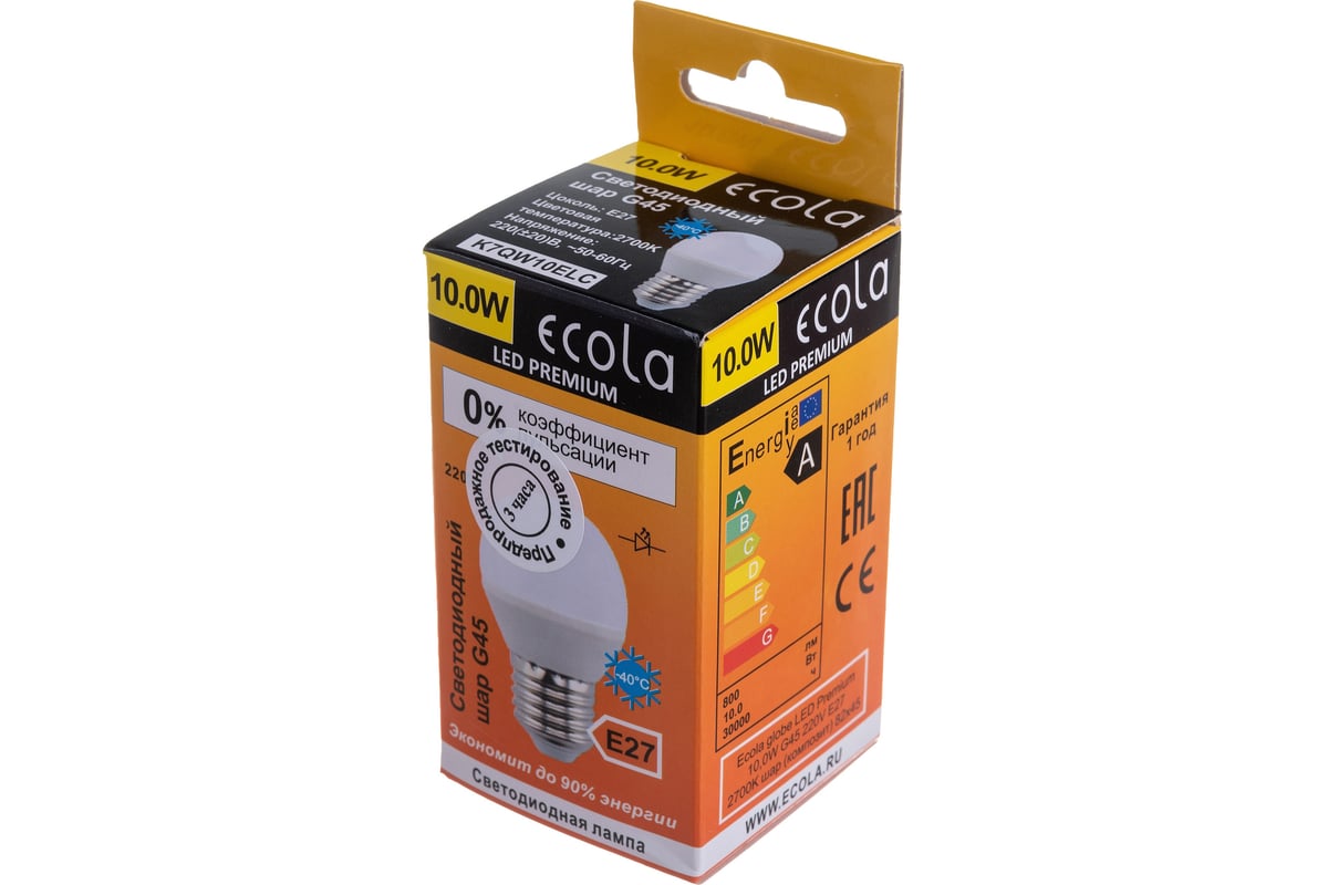 Светодиодная лампа Ecola globe LED Premium 10,0W G45 220V E27 2700K шар композит 82x45 K7QW10ELC