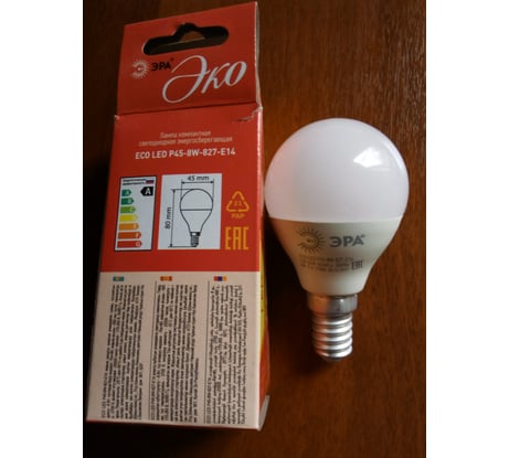 Вопросы и ответы о лампе ЭРА ECO LED P45-8W-827-E14 диод, шар,тепл Б0030022