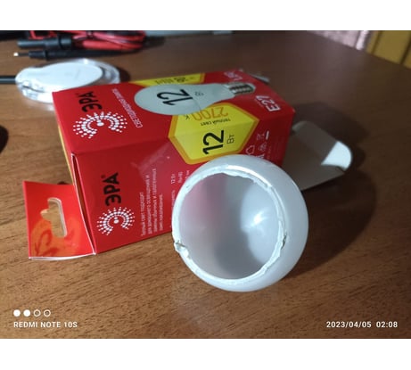 Светодиодная лампа ЭРА ЭКО LED A60 12W 827 (код товара 16921561) была куплена 10 января 2024 г. за 58 руб. Мощность, потребляемая от сети (230 В; 50 Гц), около 8,0-8,1 Вт, против заявленной 12 Вт. Цветовая температура 3000 гр. Кельвина. Свечение белое. Высота лампы 106 мм. Диаметр грушеобразной колбы 59 мм.
