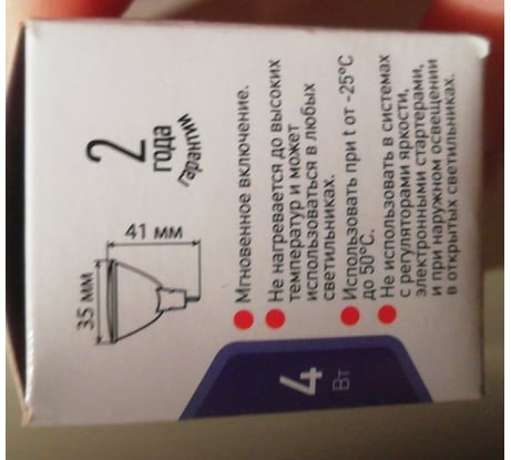 Хорошая лампочка. Свет яркий, холодный белый. не греются. Прекрасная замена галогенкам, которые грелись как маленькая печка. По длительности работы сказать не могу - использую пока в пределах месяца. Нареканий нет.