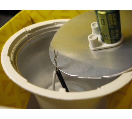 Нагревается до ~ 65градусов. (Палец "терпит" 1-2 секунды. 25W без оребрения - конденсатор внутри нужен очень качественный (фото)