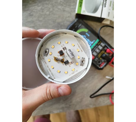 Только что получил в заказе лампы Ферон 7 Вт, 4000К. Сразу проверил соответствие мощности ваттметром. На лампе написано 7 Вт, а ваттметр показал 5 Вт. И как 4 светодиода выдадут 7 Вт? В другой лампе Ферон 2018 года 11 Вт (по ваттметру - 10,3 Вт) стоят 10 идентичных светодиодов. А лампа 5 ватт стоит дешевле семиваттной.