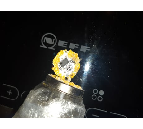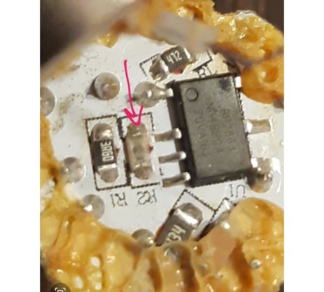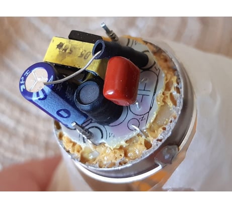 Драйвер поддается регулировки тока. Вскрыв патрон(разрезав отрезным кругом бормашинкой) можно понизить мощность лампы. Подобрав токозадающий резистор, у меня получилось мощность лампы в районе ~14,6вт. Лампа стала греться существенно меньше.