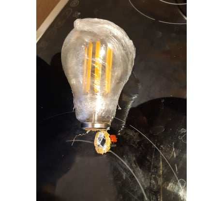 Стеклянная прозрачная колба. Когда лампа работает, выглядит как лампа накаливания - теплый свет.