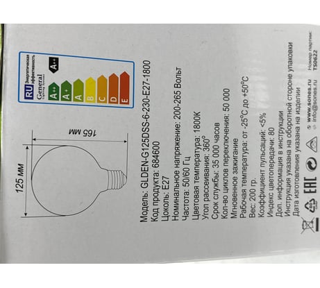 Отзывы о светодиодной лампе General Lighting Systems FIL G125DSS-6W-E27-1800K 684600