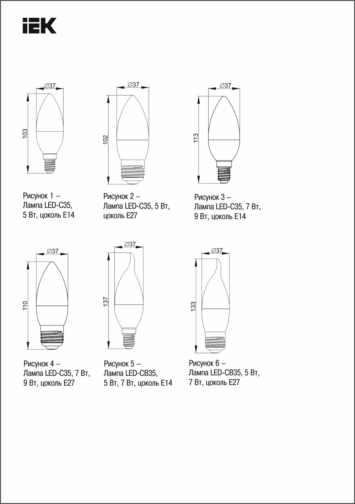 Технические характеристики IEK ECO C35 свеча 7Вт 230В 4000К E14 LLE-C35-7-230-40-E14