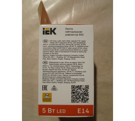 Вопросы и ответы о светодиодной лампе IEK ECO R50 рефлектор 5Вт 230В 3000К E14 LLE-R50-5-230-30-E14