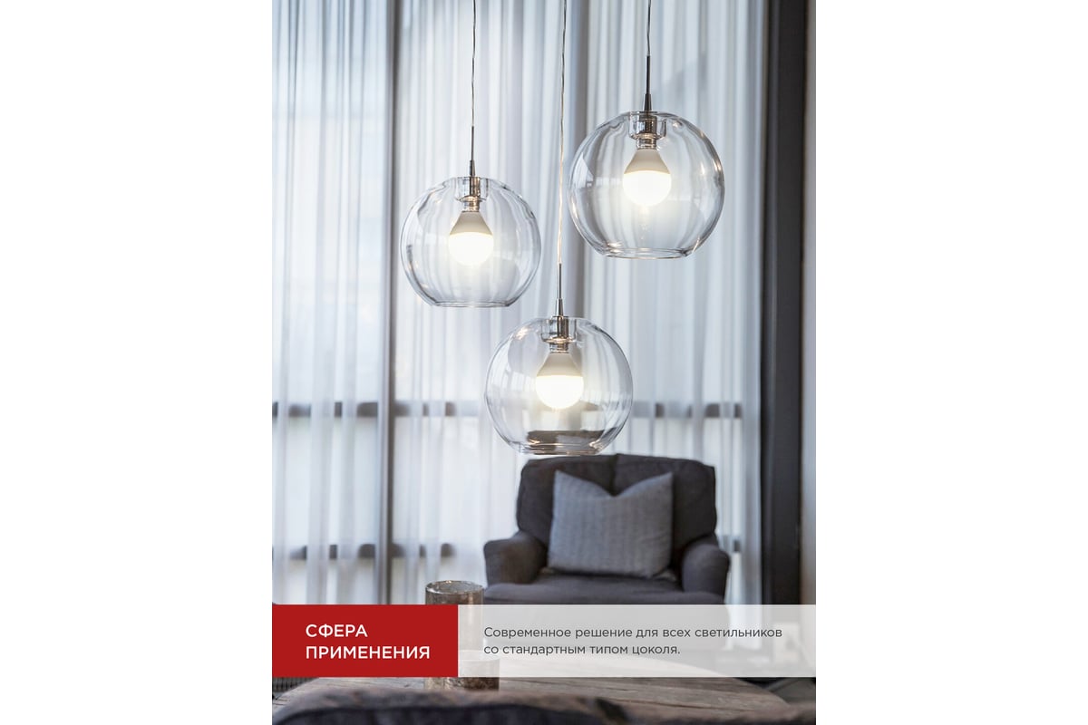 Матовая колба излучает комфортный для глаз, немерцающий свет, не вызывающий усталости и раздражения глаз.