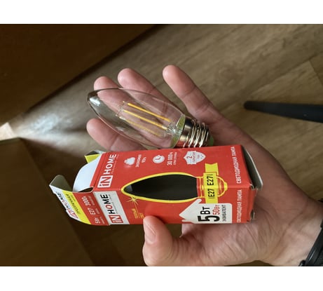 Отзывы о светодиодной лампе IN HOME LED-СВЕЧА-deco 5Вт 230В Е27 3000К 450Лм прозрачная 4690612007588