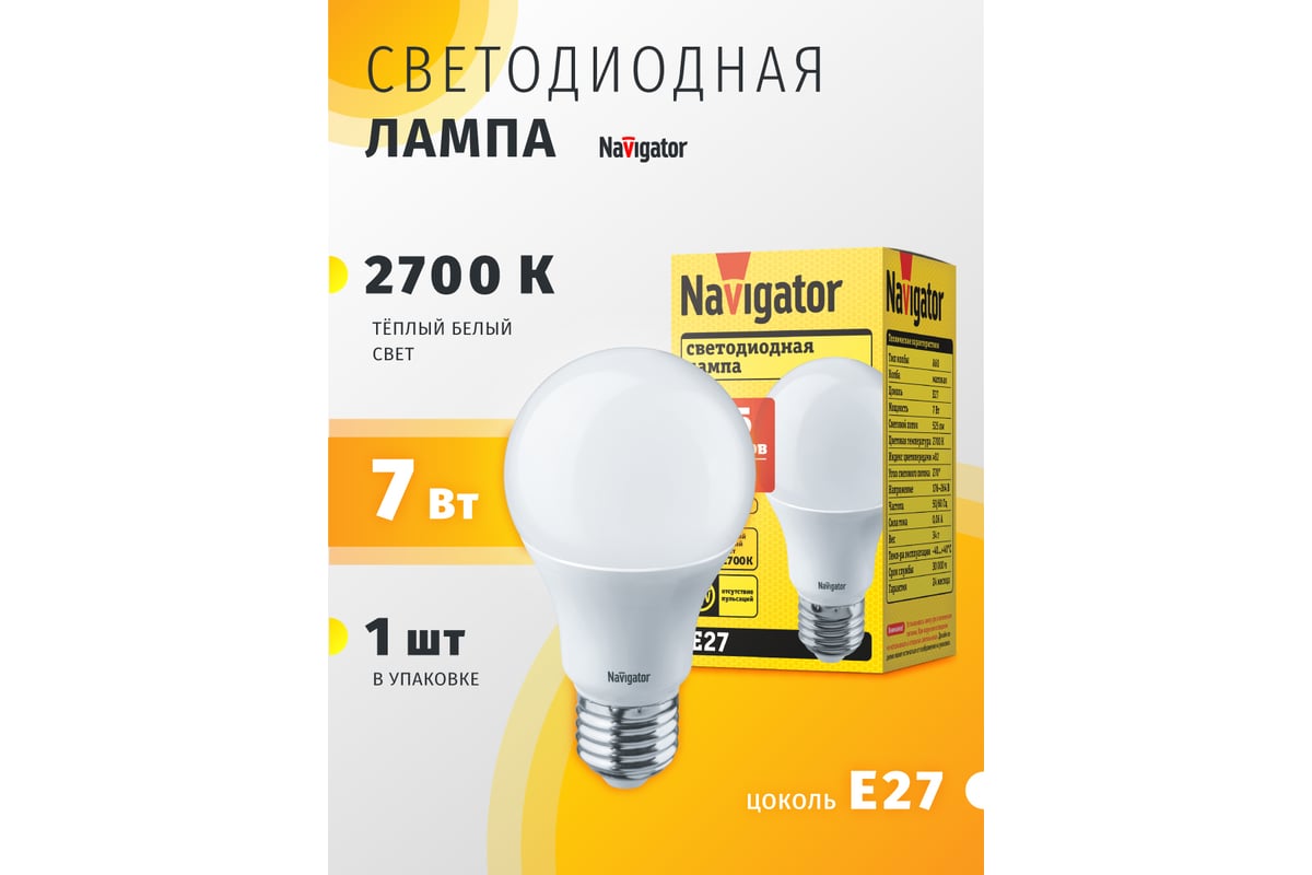 Расходные материалы для светодиодной лампы Navigator 94 385 NLL-A55-7-230-2.7K-E27 257787 4607136943858