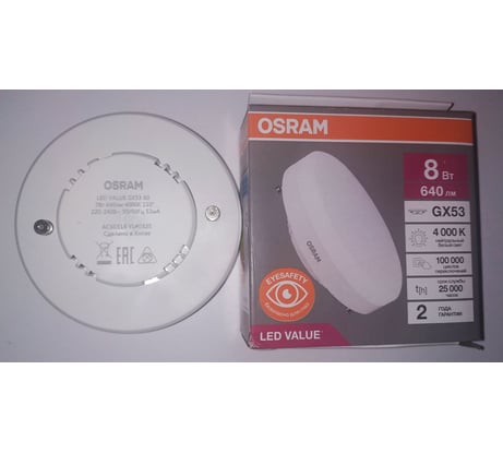 Отзывы о светодиодной лампе OSRAM LED, Value, GX, GX53, 800Лм, 10Вт, замене 75Вт, 6500К, холодный белый свет 4058075582125