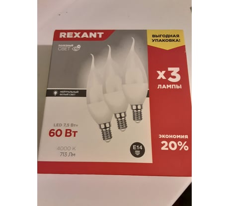Вопросы и ответы о светодиодной лампе REXANT 3 шт Свеча на ветру CW 7.5 Вт E14 4000 K нейтральный свет 604-046-3