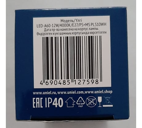 Отзывы о светодиодной лампе с датчиком освещенности и датчиком движения Uniel LED-A60-12W 4000K, E27, PS+MS, PLS10WH UL-00005713