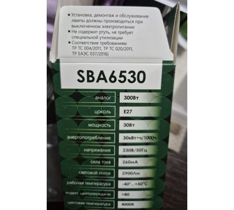 Отзывы о светодиодной лампе SAFFIT SBA6530 Шар E27 30W 4000K 55183