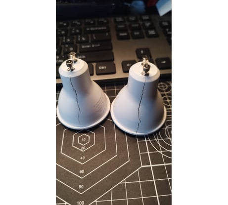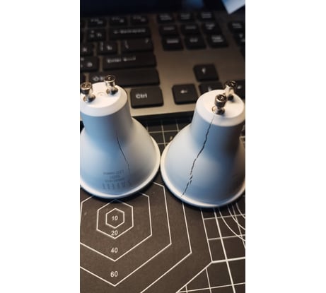 За 2 месяца перегорели 2 лампы из 6 по одному сценарию. Лопается корпус, отходит контакт, лампа перестаёт гореть. Скорее всего из-за перегрева, несмотря на то, что стоят в ванной и работают пару часов в день от силы.