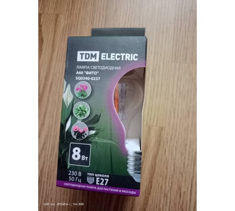 Вопросы и ответы о светодиодной лампе TDM ELECTRIC A60-8 Вт-230 В-E27-CL "ФИТО" 60*108 мм SQ0340-0237