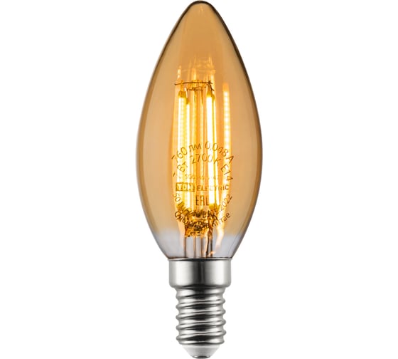 Лампа светодиодная E14 «Винтаж» золотистая, свеча, FС37, 7 Вт, 230 В, 2700К TDM ELECTRIC SQ0340-0347