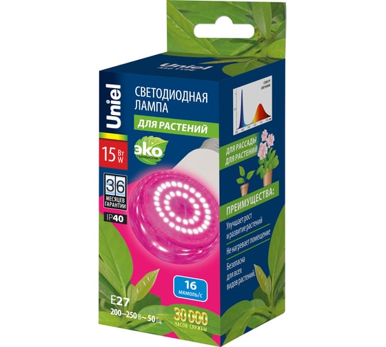 Светодиодная лампа Uniel для растений led-a60-15w/spsb/e27/cl plp30wh UL-00010107