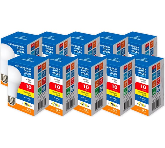 Светодиодная лампа Volpe LED-A60-10W/3000K/E27/FR/SLS набор из 10штук UL-00013827
