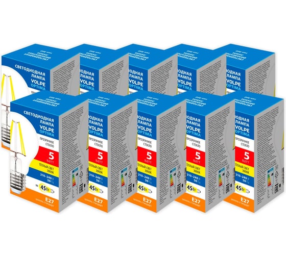 Светодиодная лампа Volpe LED-A60-5W/3000K/E27/CL/SLF набор из 10штук UL-00013838