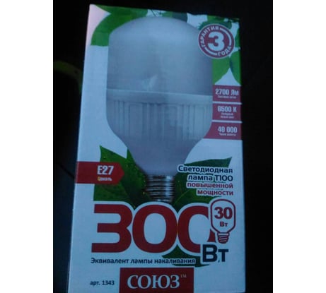 Отзывы о светодиодной лампе высокой мощности СОЮЗ SLED-SMD2835-Т100-30Вт-2700Лм-220В-6500К-E27 1343