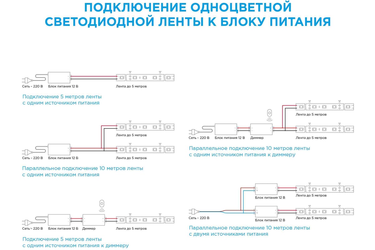 Светодиодная лента из линейки Стандарт работает от постоянного тока с напряжением 12В.