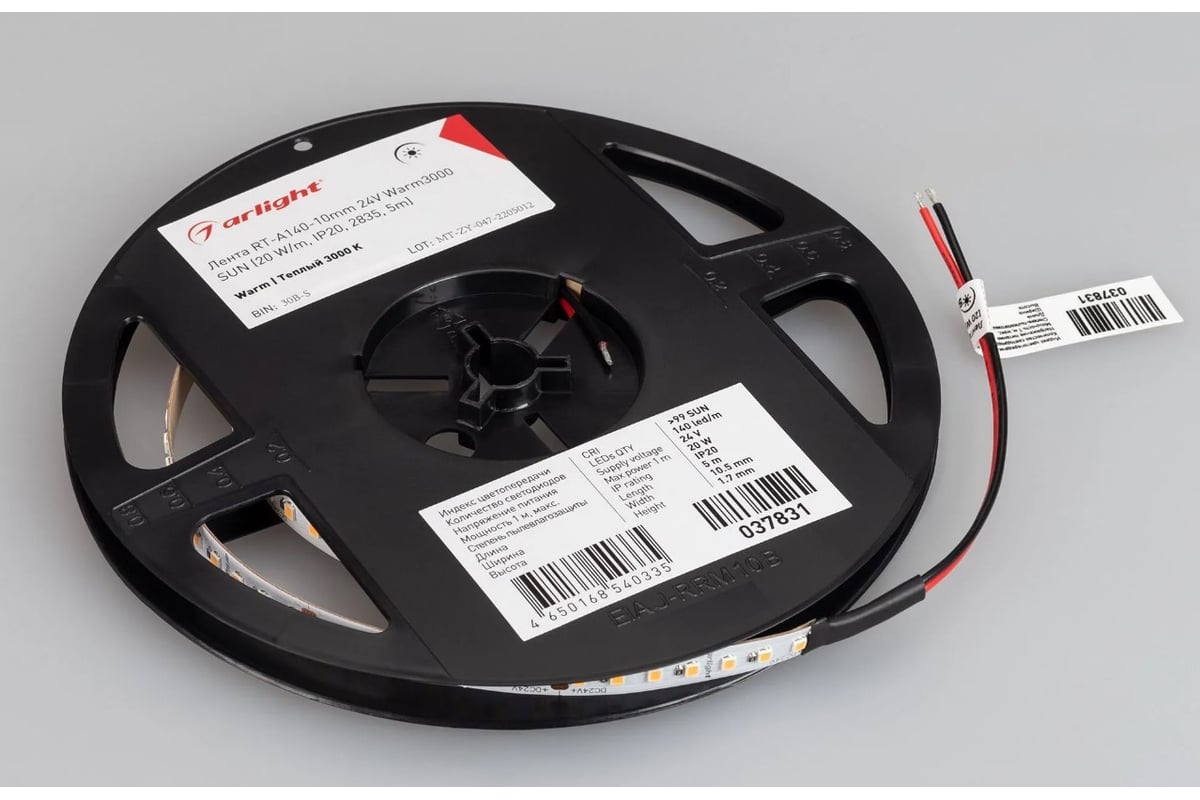 Светодиодная лента Arlight RT-A140-10mm, 24V, Warm3000 SUN 5м 037831