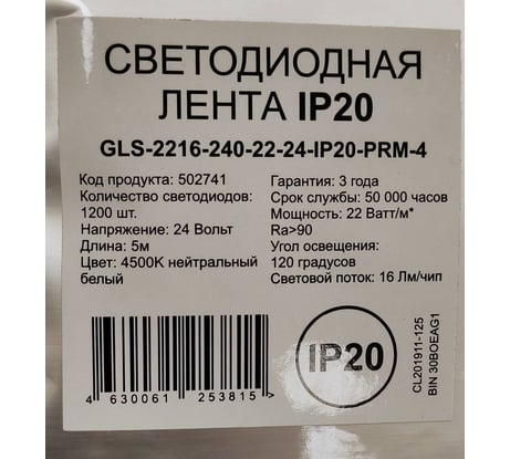 Вопросы и ответы о светодиодной ленте General Lighting Systems GLS-2216 240-22-24-IP20-PRM-4 502741