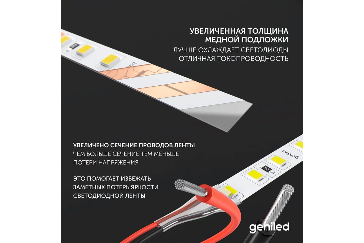 Светодиодная лента Geniled 5м 12В 20Вт/м 6000К холодная подсветка 240 led/m IP65 влагостойкая уличная 10мм 03524