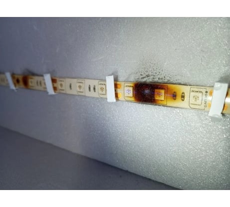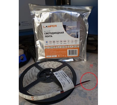 Занятно, что за 3 года не добавилось ни одного отзыва на этот товар. Первый и мой единственный восторженный был в январе 23-го. Дополню мнение по той покупке + впечатления повторного приобретения. Назначение - 3 весенних месяца в году ночной источник тепла для рассады на балконе. Автоматическое включение контроллером температурыот от правильного БП-12В/250вт. На ленту 5 метров надо 75 ватт - БП всегда холодный. Одна лента разделена на два инкубатора. За 3 сезона 23-24-25 годы постепенно выгорело 90% светодиодов. На ф1 в одном хоть что-то осалось, в другом все скисли. Выгорело в буквальном смысле - ф2. Горели балластные резисторы - ф3. Не загоралось только по причине неподдержания горения ЭППС Carbon. Альтернатив в хорошем влагозащитном исполнении, синем диапазоне и необходимой тепловой мощности не много. Поэтому лента под замену этим же вариантом. И тут сюрпризы: 1. ВИ реализует реально лежалый товар - ф4. В марте 2026 продает сделанное в июле 2023 при гарантии товара 12 месяцев. 2. На фото в карточке товара и упаковке обещана разделка коннектором. В 2023-м она была - см. фото прошлого отзыва. В 2026-м - ага, щас-с-с - ф5. Проверить до монтажа можно только с бубном. После переустановки красота - ф6.