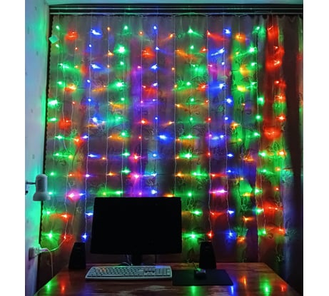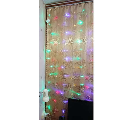 Гирлянда оказалась хорошего качества. Характеристики соответствуют заявленным. Длины провода от контроллера до вилки достаточно, чтобы подключить гирлянду в розетку без удлинителя. У гирлянды 14 нитей, по 12 лампочек в каждой нити. Итого 168 лампочек. Всего у гирлянды 4 цвета: зелёный, красный, синий и жёлтый. В каждой нити лампочки одного цвета, а цвета соседних нитей не повторяются (см. фото). Для подвешивания гирлянды я изготовил 8 крючков из длинных скрепок, но при этом нельзя закрывать гардины, так как они упираются в крючки. Гирлянда работала примерно по 6 часов в день в течение 20 дней. Надеюсь, что она прослужит ещё не один год. Рекомендую к приобретению.