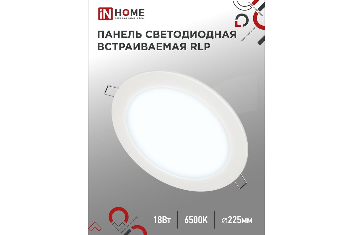 Расходные материалы для светодиодной встраиваемой круглой светильник IN HOME 18Вт 230В 6500К 1080Лм 225мм белая IP40 4690612038476