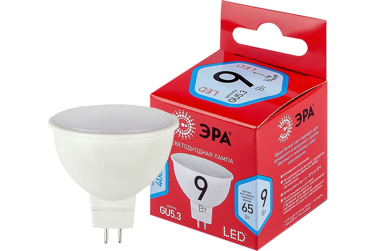 Вопросы и ответы о светодиодных лампочках ЭРА ЭКО LED MR16 9W 840 GU5.3 R 9Вт софит, нейтральный холодный белый Б0050199