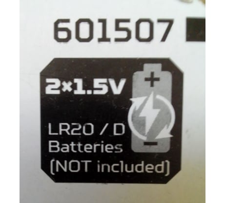 Тип питания - батареи LR20/D в количестве 2 штуки и напряжением 3 В, которые не входят в комплект.