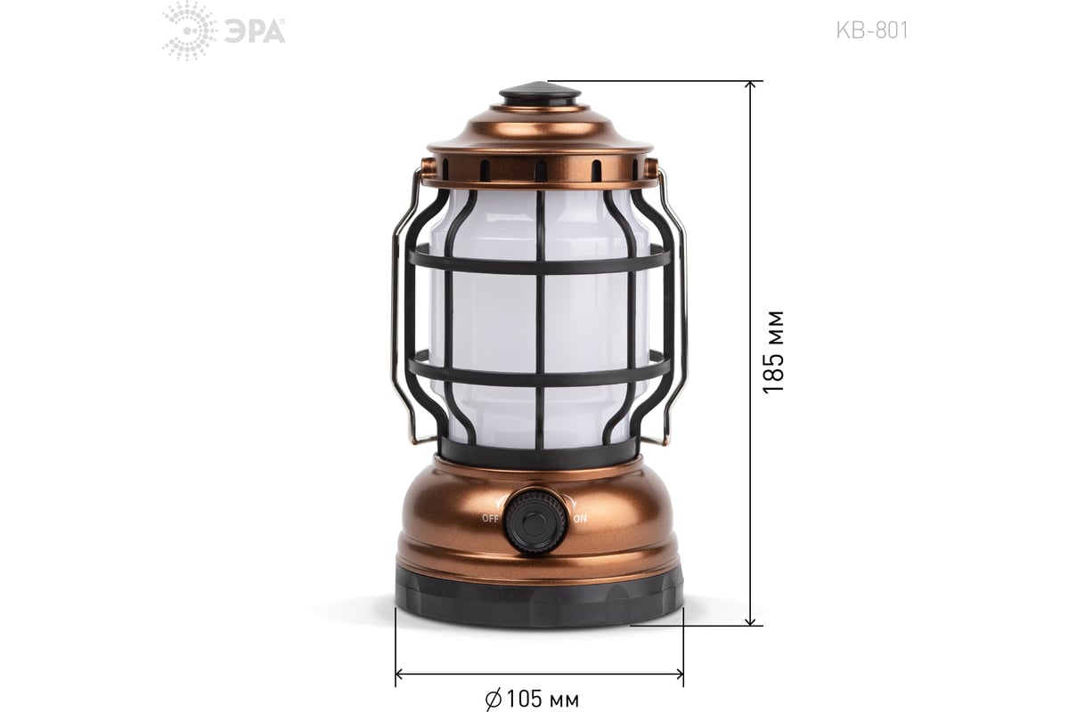 Светодиодный кемпинговый фонарь ЭРА KB-801 Факел на батарейках 2 режима холодный+пламя Б0054042 - кемпинговый фонарь в ретро-стиле. Светит в 2 режимах – холодный белый свет и режим теплого пламени. Работает от 3 пальчиковых батареек (3 х АА). Одного комплекта алкалиновых элементов питания хватает на 60 часов непрерывного свечения.