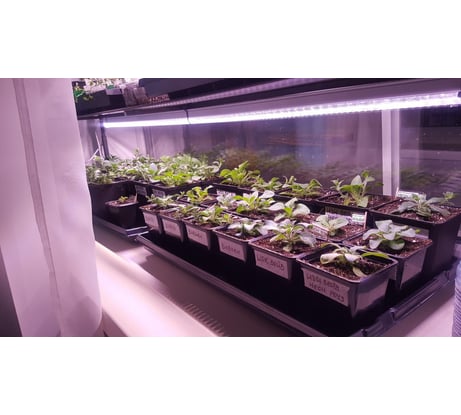 Рассада не вытягивается, петуния приземистая, шикарная. Отлично наращивают зеленную массу! Мощная, лампа не нагревается, рассаду не обжигает и не сушит. Очень давольна покупкой!