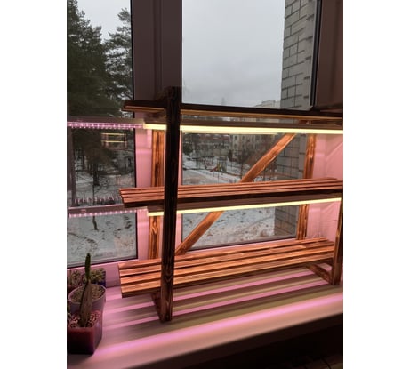 Отлично подходит для суккулентов. Не вытягиваются. Свет нежно розовый, но очень яркий.