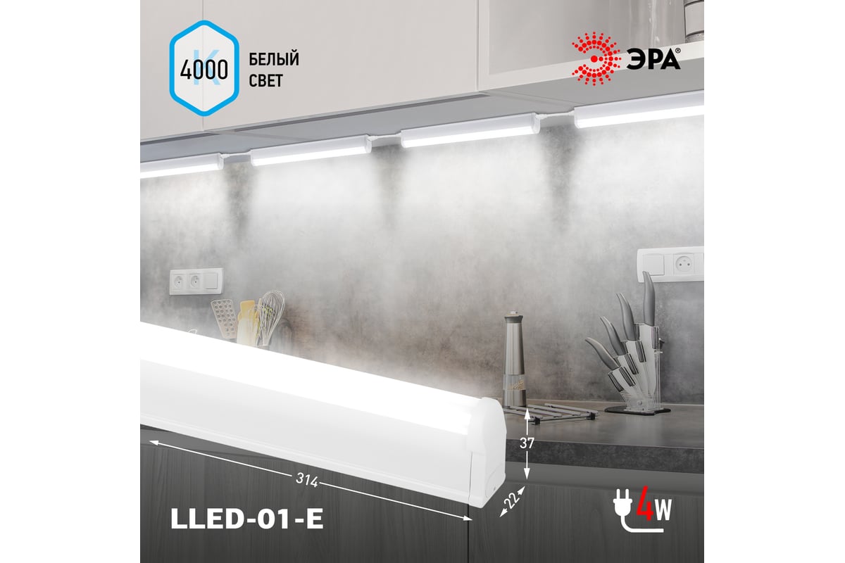 Вопросы и ответы о светильнике ЭРА LLED-01-04W-4000-E 4Вт 4000К L311мм Б0052719