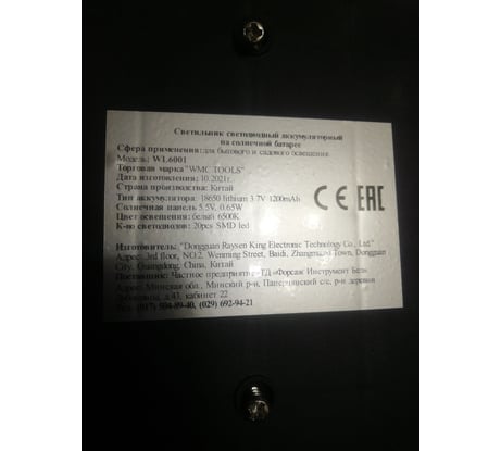 Вопросы и ответы о светильнике WMC TOOLS на солнечной батарее (20 светодиодов SMD) WMC-WL6001(48729)