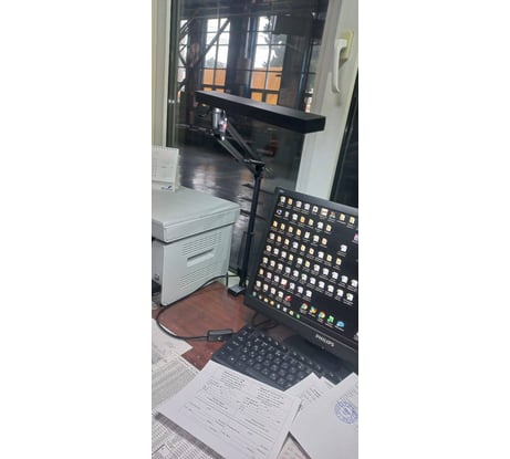 Светильник со светодиодами (LED) в качестве источников света. Модель на струбцине. Выключатель на проводе. Изменяемая цветовая температура: 3000К/4500К/6000К. Высота плафона регулируется двухсекционной сгибающейся стойкой, направление света регулируется поворотом плафона в любом направлении.