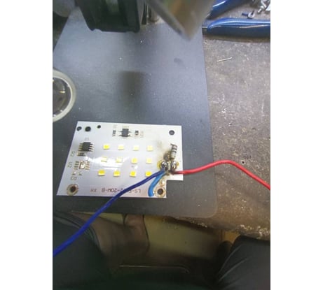 Сгорел при включении. Попался бракованный. Разобрал оказалось замкнутый между собой на крестале провода.