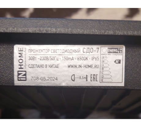 Вопросы и ответы о прожекторе IN HOME СДО-7 30Вт 230В 6500К IP65 черный 4690612034621